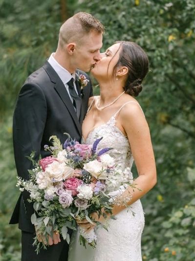 My Signature is lush, loose, and garden style using a lot of branches and trailing greenery. I love the untamed look of nature rather than following a strict form. I like to make my designs look as if they were still growing in the field.
